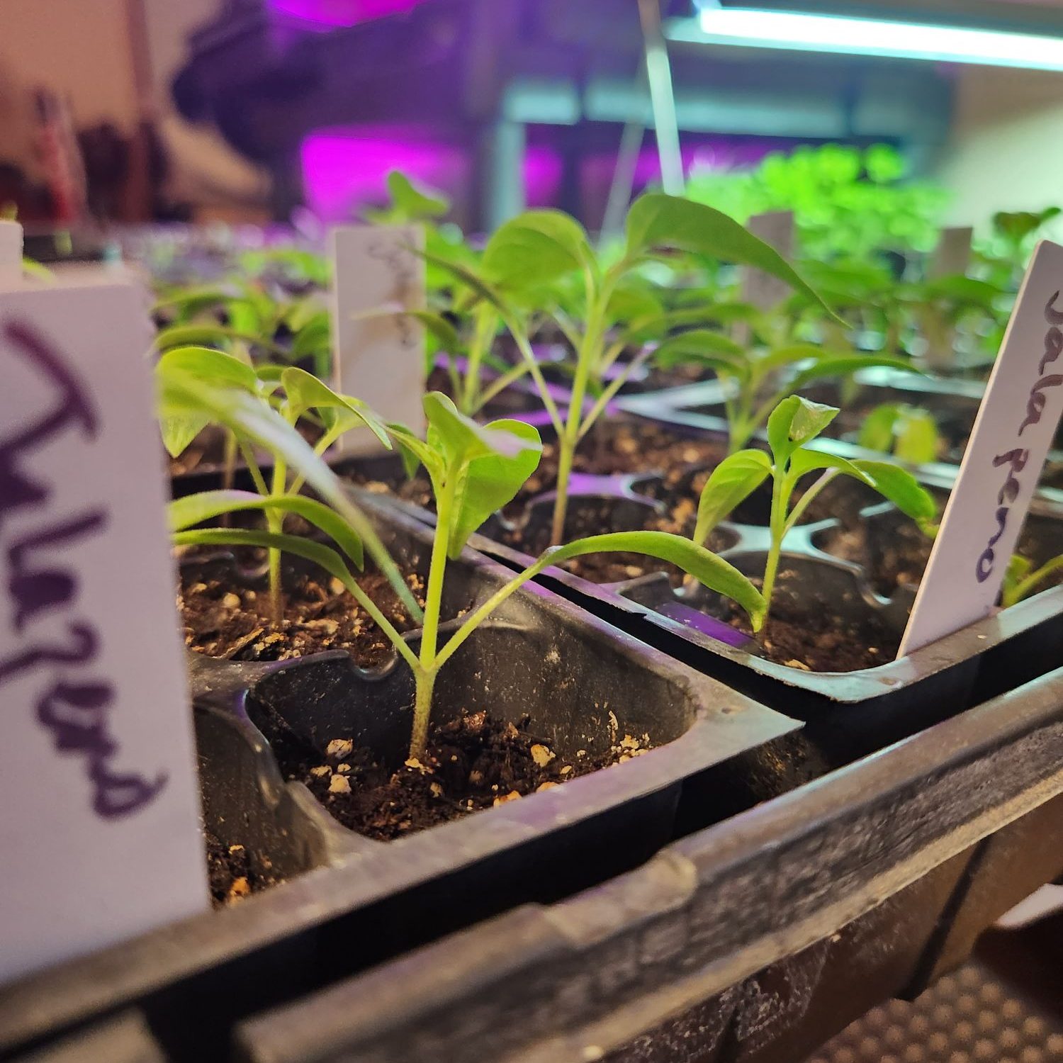 Grow lights are used to give plants access to the full spectrum of light they would otherwise have access to in nature. These lights can be LED or fluorescent, you can get as into the science as you want to, but basically plants need different spectrum of color for different growth stages. Blue light helps with growing the plant structurally and the red light spectrum helps with producing flowers, fruit, and the growth of new foliage. There are many options online, and believe me when I say I have successfully started plants with a plain old fluorescent shop light. The downside with those is that you must be careful to not overheat the plants, the light must be close enough, but you may need fans to keep plants cool.